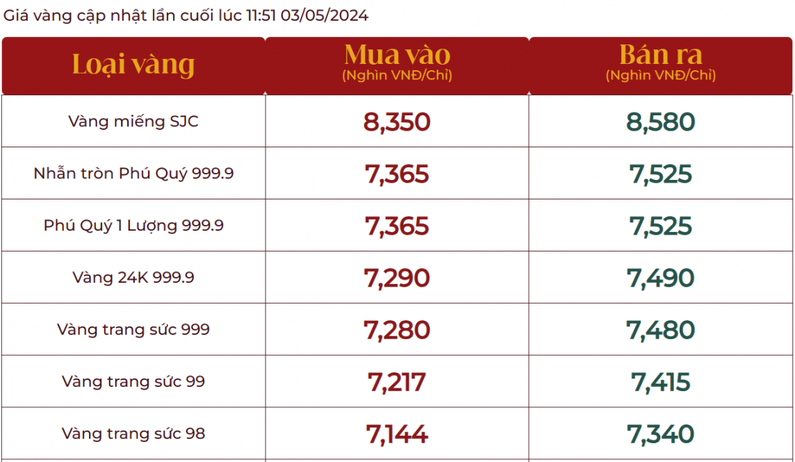 | Giá vàng giao dịch tại Tập đoàn Phú Quý |