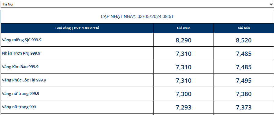 | Giá vàng giao dịch tại Công ty Cổ phần Vàng bạc đá quý Phú Nhuận |