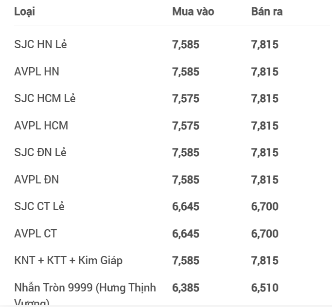 | Sau phiên tăng phi mã, giá vàng SJC và vàng nhẫn 999.9 đồng loạt giảm mạnhGiá vàng cuối tuần tiếp đà giảm, vàng SJC bán ra còn 78,25 triệu đồng/lượng |