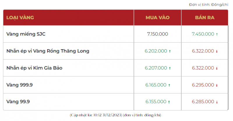Tính đến 10h15 ngày 31/12, giá vàng SJC tại Công ty Doji Hà Nội giao dịch ở mức 68,00-74,00 triệu đồng/lượng mua vào - bán ra, giảm 500 ngàn đồng/lượng chiều mua vào và giảm 2 triệu đồng/lượng chiều bán ra so với ngày hôm qua. Chênh lệch giữa mua và bán là 6 triệu đồng/lượng.