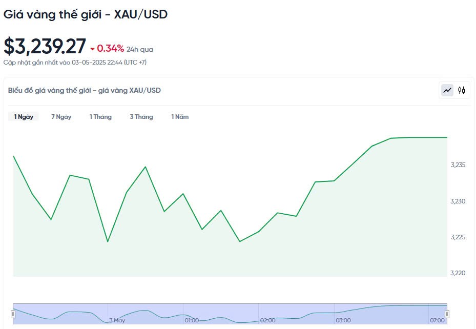 Giá vàng thế giới hôm nay 04/05/2025 và biểu đồ biến động giá vàng thế giới 24h qua