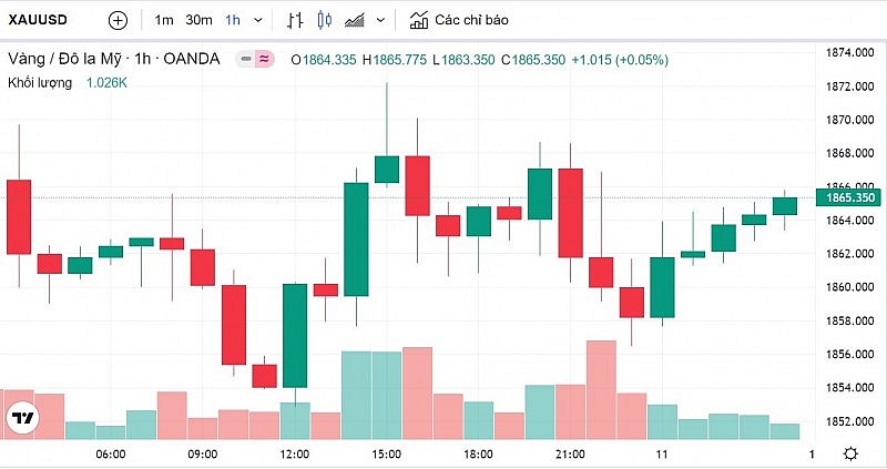 Trong khi đó, vàng thế giới phục hồi trở lại, hiện ở mốc 1.865 USD.