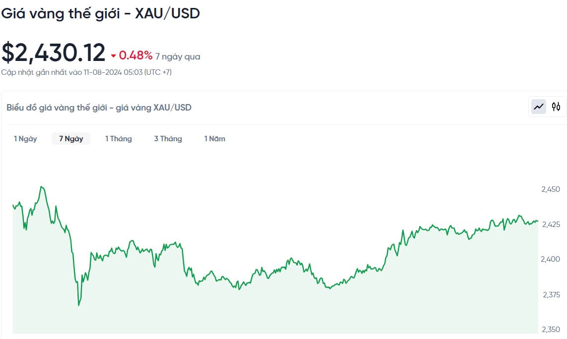 Giá vàng thế giới hôm nay 11/8/2024 và biểu đồ biến động giá vàng thế giới 24h qua