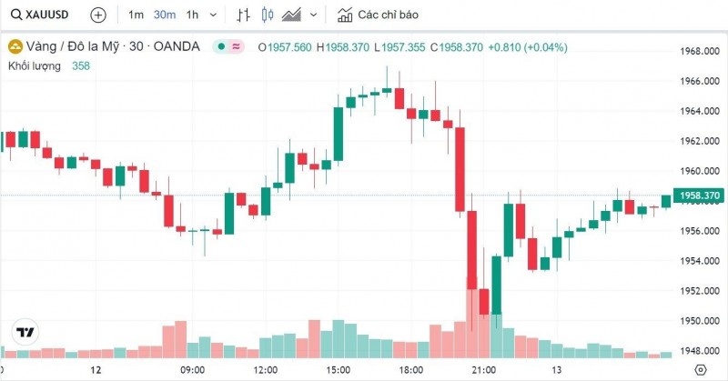 Trong khi đó, vàng thế giới cũng hạ nhiệt, hiện ở mốc 1958 USD.