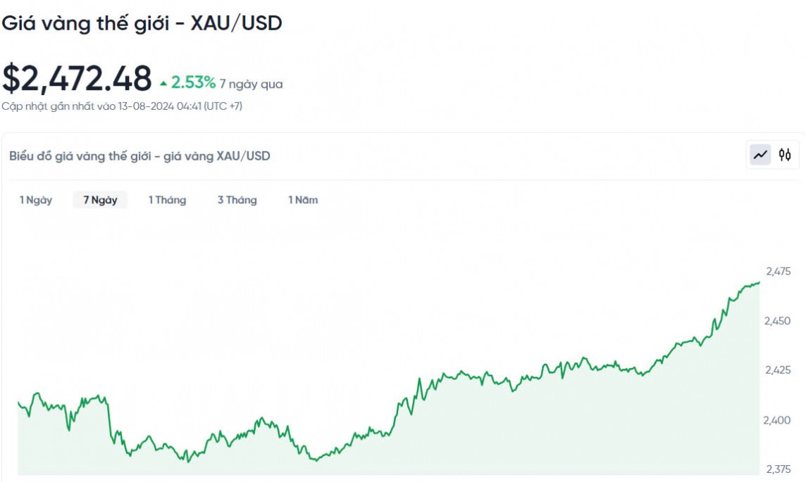 Giá vàng thế giới hôm nay 13/8/2024 và biểu đồ biến động giá vàng thế giới 24h qua