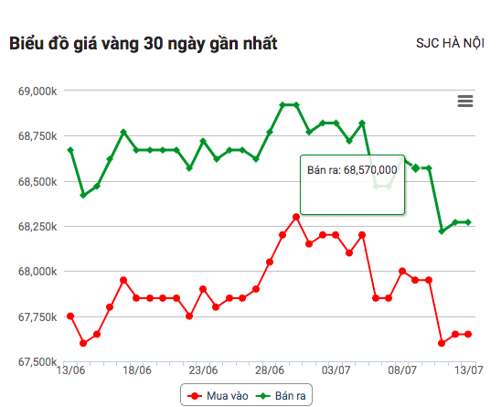 | Giá vàng hôm nay 12/7: Vàng SJC giảm gần 500 nghìn đồngGiá vàng hôm nay 13/7: Vàng trong nước giao dịch quanh 67,6 triệu đồng |