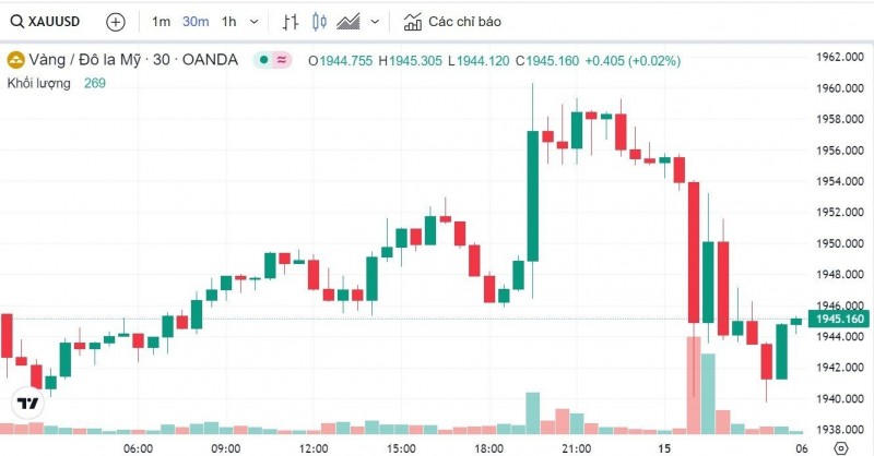 Trong khi đó, vàng thế giới đi ngang, hiện ở mốc 1945 USD.
