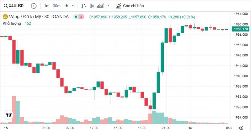 Trong khi đó, vàng thế giới phục hồi nhẹ, hiện ở mốc 1958 USD.