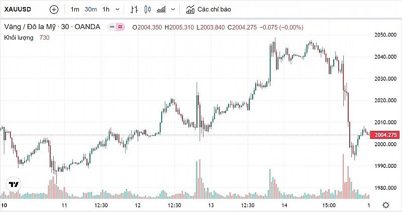 Trong khi đó, vàng thế giới đạt phiên tăng tuần nhẹ, đạt mốc 2.004 USD.