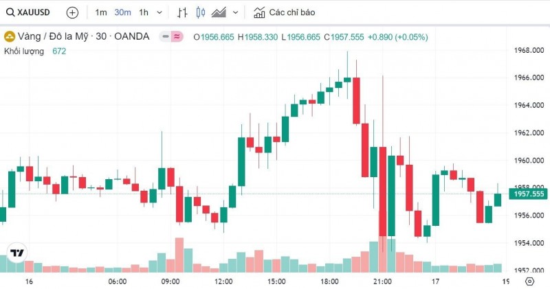 Trong khi đó, vàng thế giới hiện ở mốc 1957 USD.