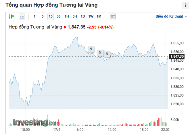 Giá vàng hôm nay 18/6 giao dịch sát mốc quan trọng 1.850 USD/ounce do chỉ số đồng USD được coi là thước đo "sức khỏe" của đồng bạc xanh so với các đồng tiền chủ chốt khác đi lên. Giá vàng trong nước vì vậy cũng biến động.
