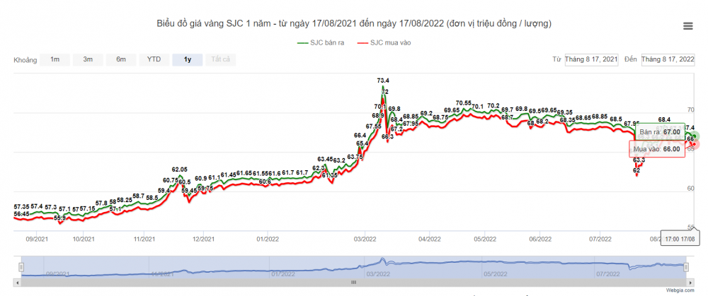 | Giá vàng hôm nay 16/8: Vàng SJC lùi sát ngưỡng 67 triệu đồngGiá vàng hôm nay 17/8: Vàng trong nước cao hơn thế giới hơn 16 triệu |