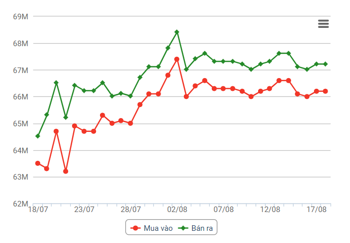 | Biểu đồ giá vàng SJC 30 ngày gần nhất |