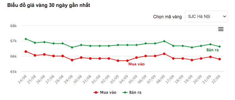| Giá vàng hôm nay 20/9: Giá vàng 9999 đi ngangGiá vàng hôm nay 21/9: Giá vàng 9999 tăng nhẹGiá vàng hôm nay 22/9: Giá vàng 9999 trong nước điều chỉnh nhẹ |