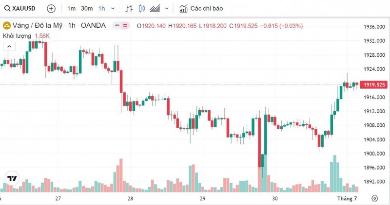 Trong khi đó, vàng thế giới hiện ở mốc 1919 USD.