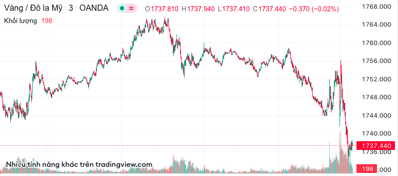 Trên thị trường thế giới, giá vàng giao ngay giảm nhẹ xuống 1.737 USD/ounce, theo Kitco. Giá vàng giao tháng 12 cũng chạm mức 1.755 USD/ounce.