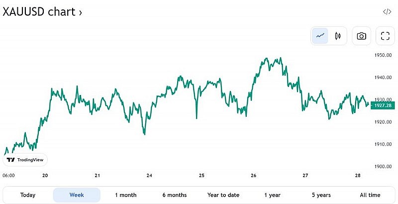 Trong khi đó, vàng thế giới xác lập đà giảm tuần, chốt phiên giao dịch ở mức 1.927 USD/ounce.