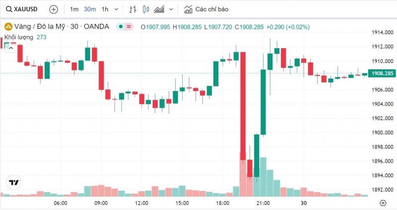 Trong khi đó, vàng thế giới hiện ở mốc 1.908 USD.
