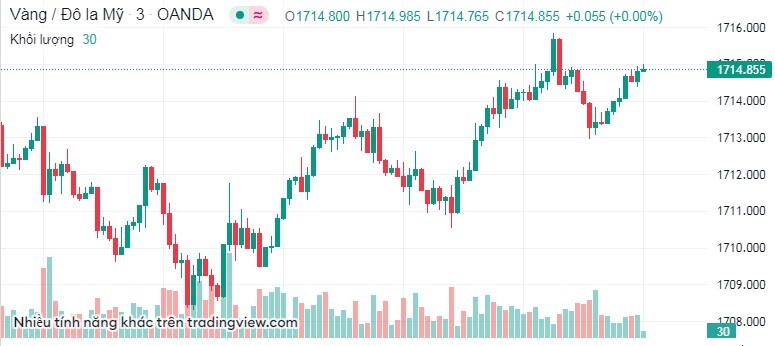 Theo Kitco, giá vàng giao ngay tăng lên 1.714 USD/ounce, vàng giao tháng 12 tăng lên 1.724 USD/ounce. Quy đổi theo giá USD của ngân hàng Vietcombank, giá vàng thế giới tương đương 48,74 triệu đồng/lượng, thấp hơn khoảng 18 triệu đồng/lượng so với giá vàng trong nước.