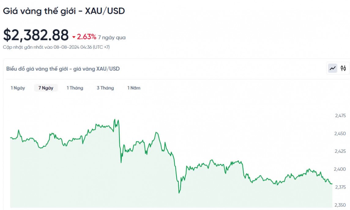 Giá vàng thế giới hôm nay 8/8/2024 và biểu đồ biến động giá vàng thế giới 24h qua