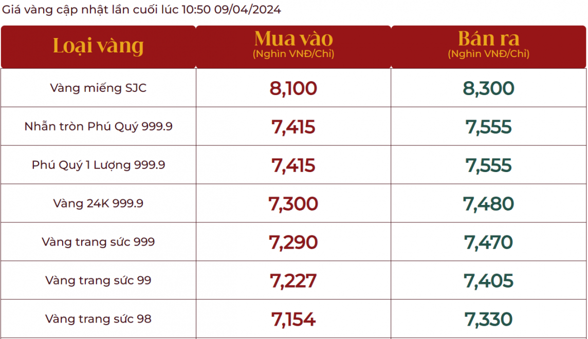 | Giá vàng giao dịch tại Tập đoàn Phú Quý |