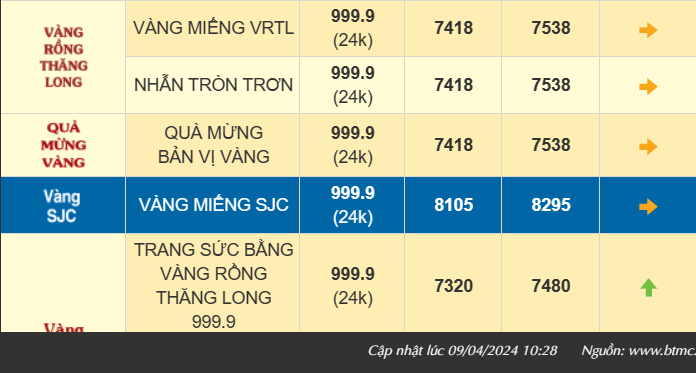 | Giá vàng giao dịch tại Bảo Tín Mạnh Hải |