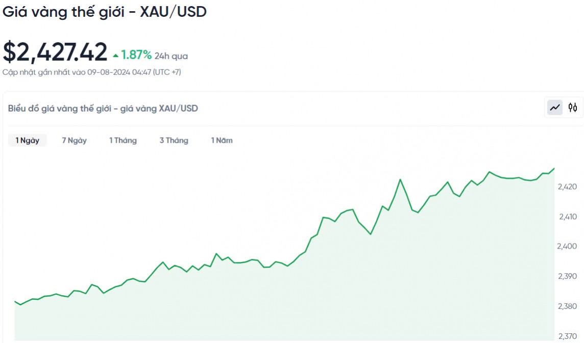 Giá vàng thế giới hôm nay 9/8/2024 và biểu đồ biến động giá vàng thế giới 24h qua