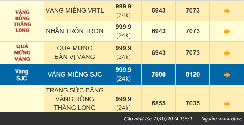 | Giá vàng giao dịch tại Bảo Tín Mạnh Hải |