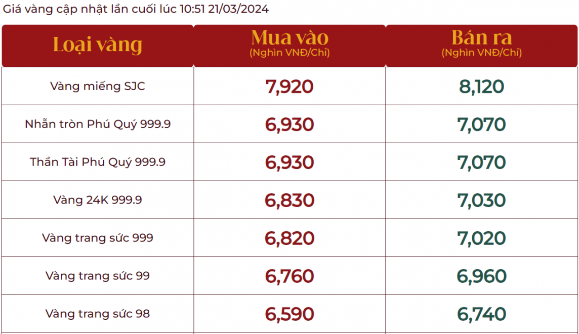 | Giá vàng giao dịch tại Tập đoàn Phú Quý |