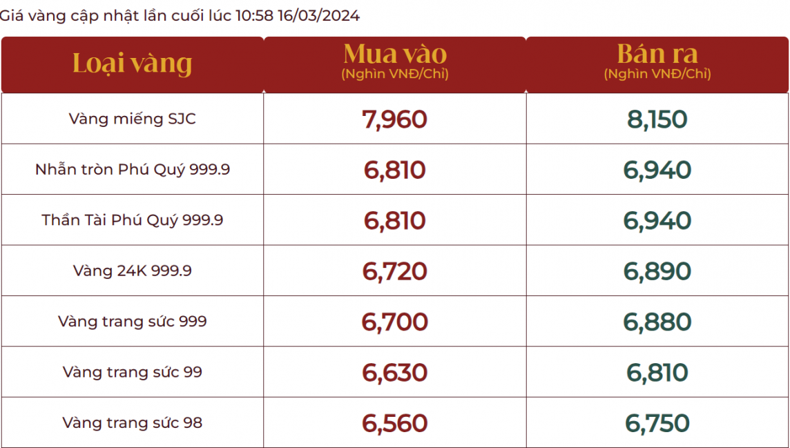| Giá vàng giao dịch tại Tập đoàn Phú Quý |