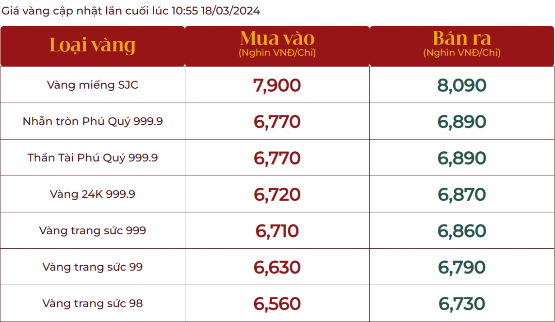 | Giá vàng giao dịch tại Tập đoàn Phú Quý |