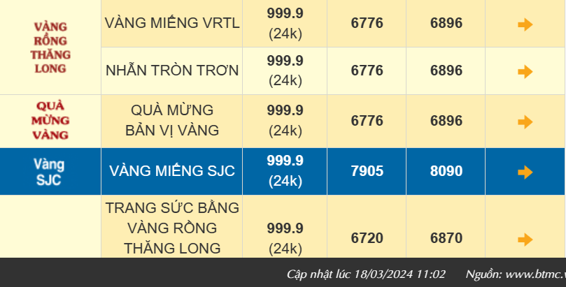 | Giá vàng giao dịch tại Bảo Tín Mạnh Hải |