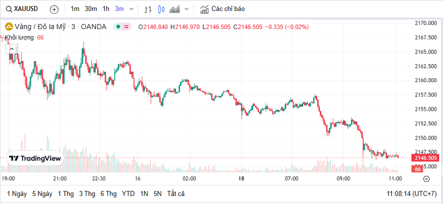 Trong phiên giao dịch đầu tuần mới (giờ Việt Nam), giá vàng thế giới đang ghi nhận xu hướng giảm nhẹ, phổ biến giao dịch ở mức 2.151 USD/ounce, giảm khoảng 5 USD so với chốt phiên cuối tuần trước.