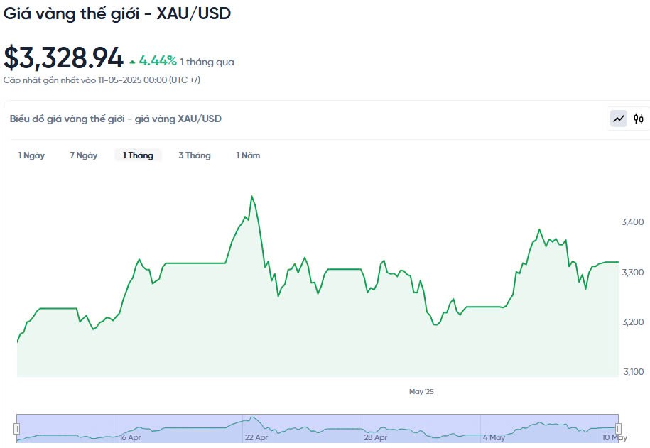 Giá vàng thế giới hôm nay 11/05/2025 và biểu đồ biến động giá vàng thế giới 24h qua