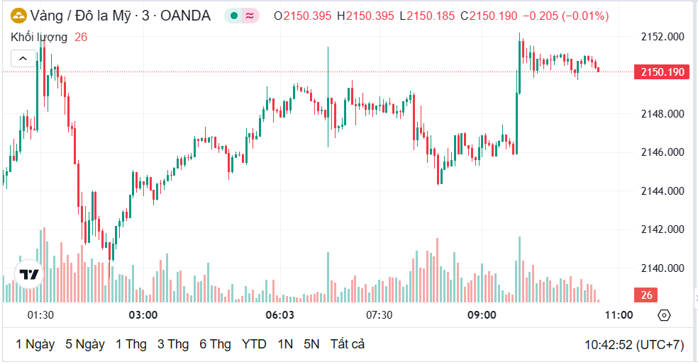 Ghi nhận lúc 10h30 hôm nay (giờ Việt Nam ngày 7/3), theo Kitco, giá vàng thế giới giao ngay ở mức 2.150 USD/ounce, tăng thêm 19,995 USD/ounce so với giá vàng ngày hôm qua. Vàng tiếp tục tăng trong phiên giao dịch ngày hôm nay dựa trên kỳ vọng việc nới lỏng tiền tệ của Mỹ.