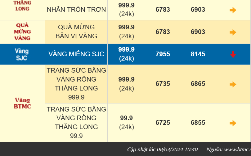 | Giá vàng giao dịch tại Bảo Tín Mạnh Hải |