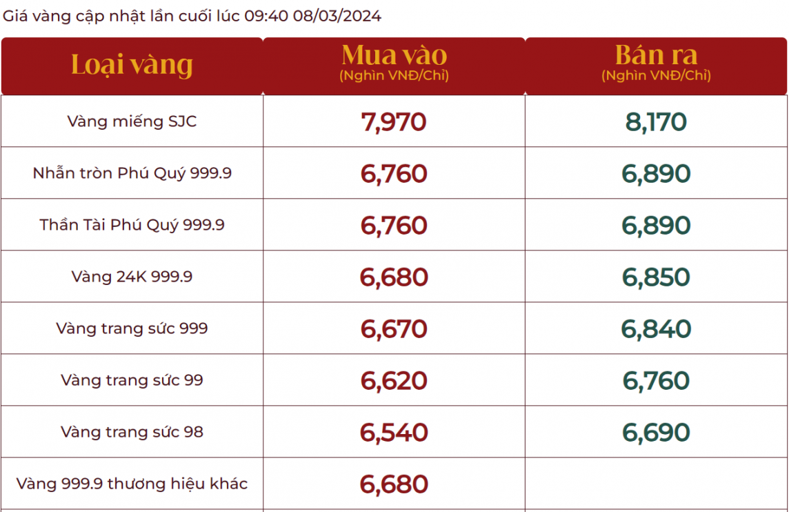 | Giá vàng giao dịch tại Tập đoàn Phú Quý |