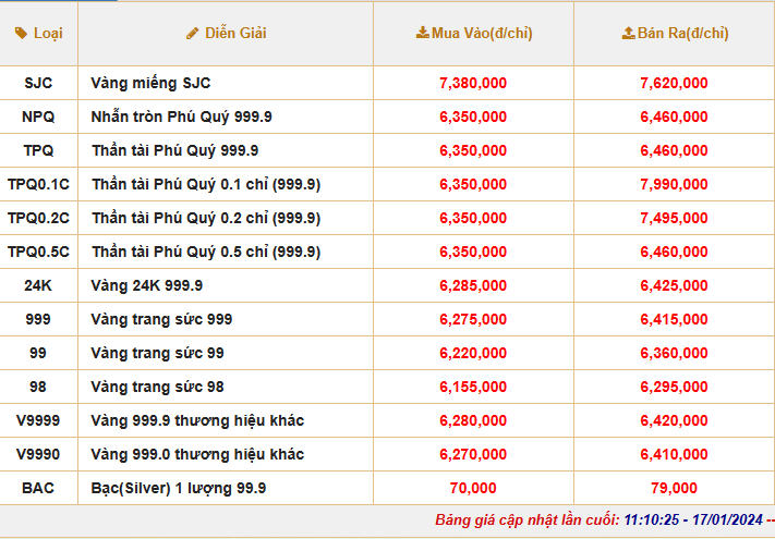| Giá vàng giao dịch tại Tập đoàn Phú Quý |