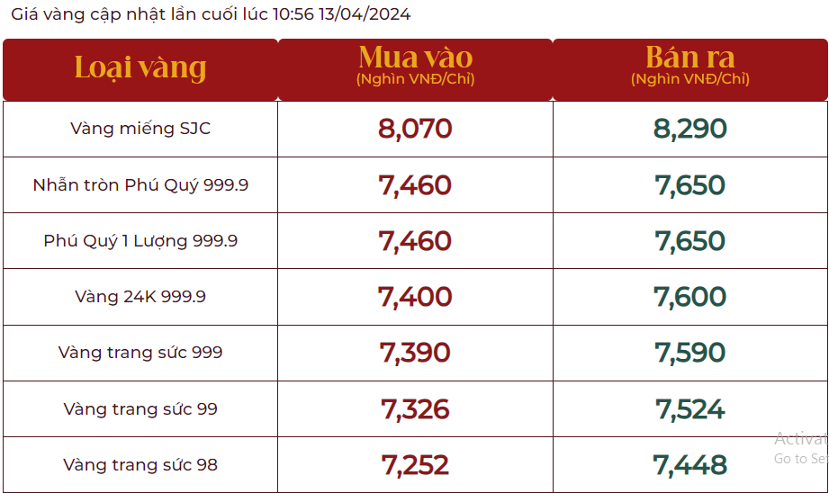 | Giá vàng giao dịch tại Tập đoàn Phú Quý |