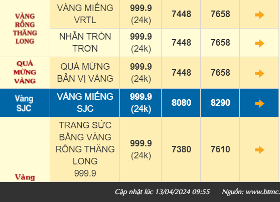 | Giá vàng giao dịch tại Bảo Tín Mạnh Hải |