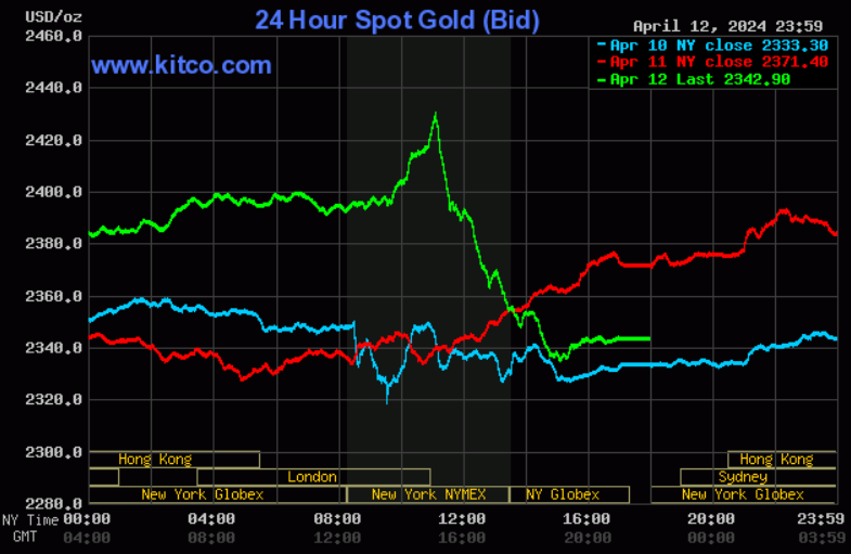 Đầu giờ sáng nay, giá vàng thế giới quay đầu giảm với vàng giao ngay giảm 27,5 USD xuống 2.343,9 USD/ounce. Vàng tương lai giao dịch lần cuối ở mức 2.360,1 USD/ounce, giảm 30,5 USD so với rạng sáng qua.