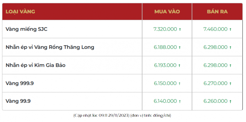 Tương tự, nhẫn ép vỉ vàng rồng Thăng Long của Công ty Bảo Tín Mạnh Hải 99.9 giao dịch ở mức 61,88 - 62,98 triệu đồng/lượng (mua vào - bán ra), tăng 500.000 ngàn đồng so với ngày hôm qua.
