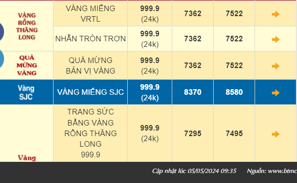 | Giá vàng giao dịch tại Bảo Tín Mạnh Hải |