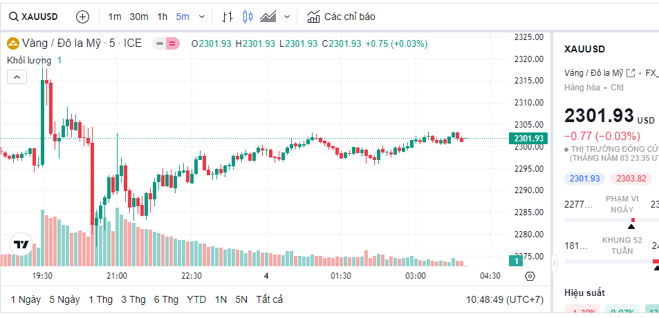 Giá vàng quốc tế chốt tuần giao dịch ở mức 2.301 USD/ounce, giảm khoảng 26 USD/ounce. Tính chung cả 2 tuần trở lại đây, giá vàng giảm gần 90 USD/ounce và tiếp tục lùi xa khỏi vùng đỉnh lịch sử 2.410 USD/ounce.