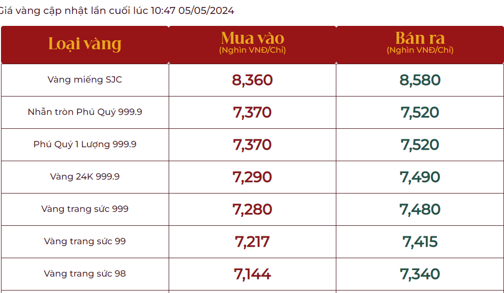 | Giá vàng giao dịch tại Tập đoàn Phú Quý |