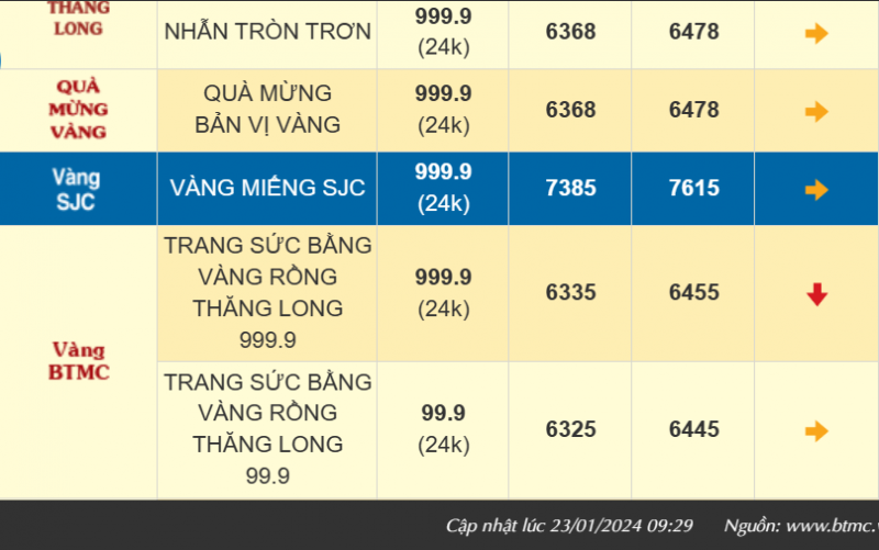 Giá vàng trong nước