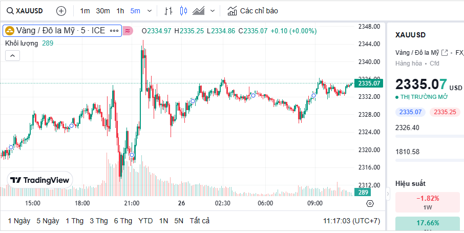 | Biểu đồ giá vàng thế giới trưa nay |