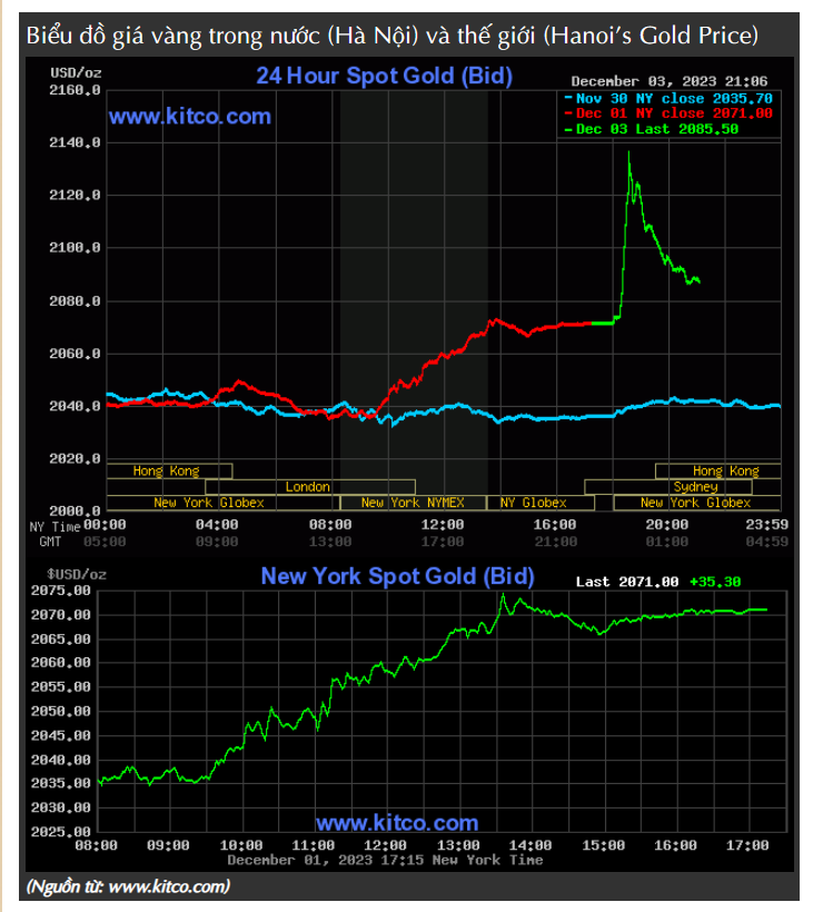 Ghi nhận lúc 5h00 hôm nay (giờ Việt Nam), theo Kitco, giá vàng ngay ở mức 2.071,88 USD/ounce.