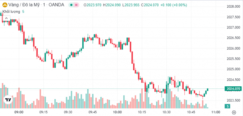 Giá vàng trong nước tăng bất chấp giá vàng thế giới biến động giảm. Đến 9 giờ 30 phút theo giờ Việt Nam, giá vàng thế giới được giao dịch ở mức 2.024 USD/ounce, tăng nhẹ khoảng 6 USD/ounce so với đêm hôm qua. Nhưng trong 2 ngày qua, giá vàng thế giới giảm khoảng 15 USD/ounce.