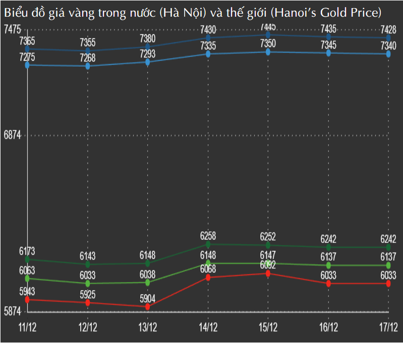Tính đến 9h45 ngày 17/12, giá vàng SJC tại Công ty Doji Hà Nội giao dịch từ 73,20-74,40 triệu đồng/lượng mua vào/bán ra, bằng giá chiều mua vào và bán ra so với ngày hôm qua.